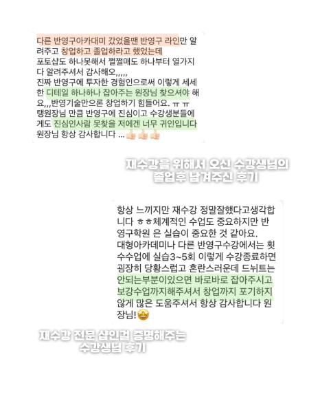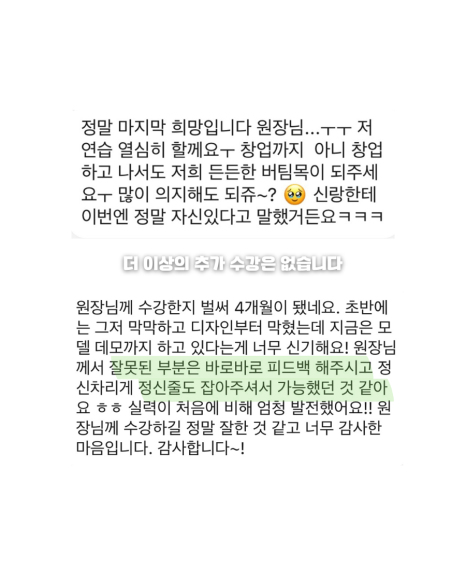 " 일전에 강남에서 수업을 듣고, 인원수가 많아서 집중도 떨어지고 ... 원장님께서도